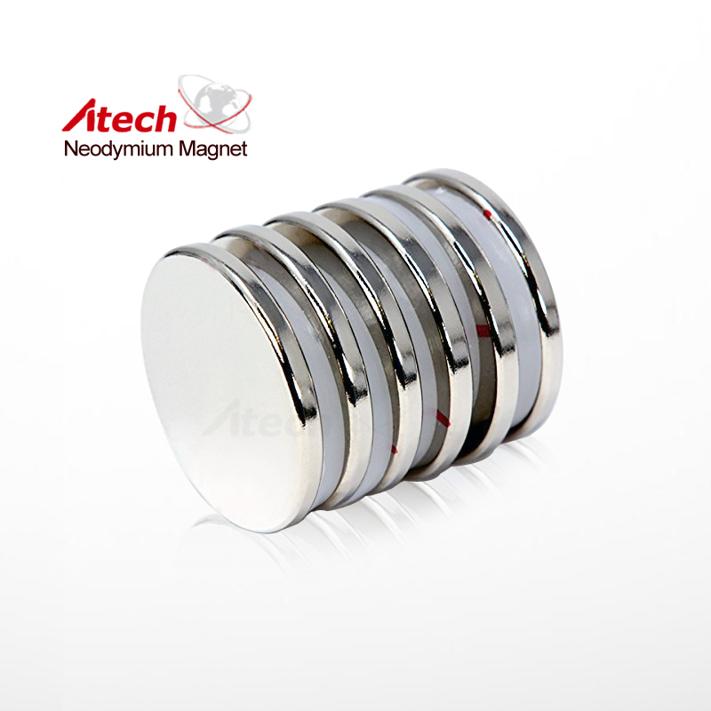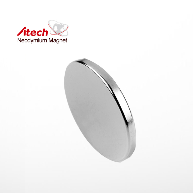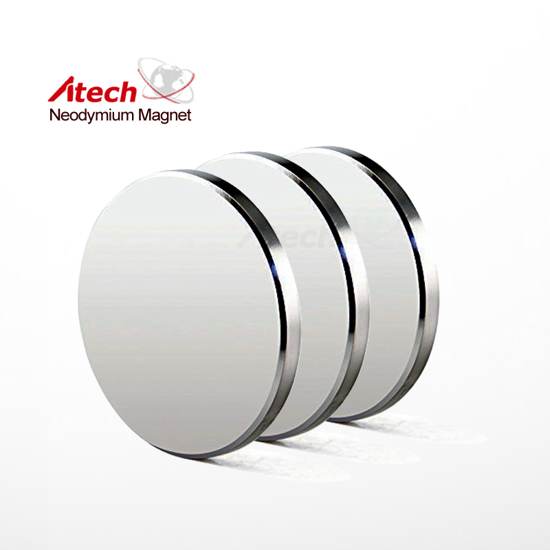 Nickel Coated N33M Neodymium Magnet Disc is made from high performance Neodymium Iron Boron. The NORTH pole is on one circular face and the SOUTH pole is on the opposite face. These Magnets are plated with 3 layers of protective coatings - Nickel + Copper + Nickel (Ni-Cu-Ni). The maximum operating temperature of Nickel Coated N33M Neodymium Magnet Disc is up to 100 degrees C.