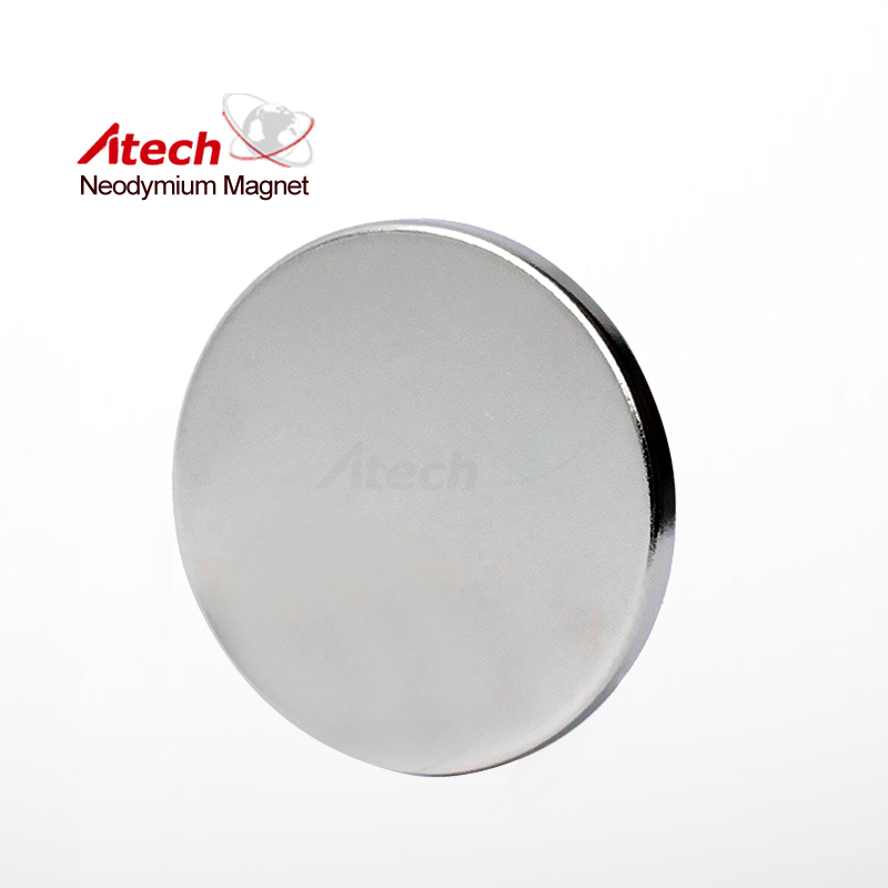 Nickel Coated N35M Neodymium Magnet Disc is made from high performance Neodymium Iron Boron. The NORTH pole is on one circular face and the SOUTH pole is on the opposite face. These Magnets are plated with 3 layers of protective coatings - Nickel + Copper + Nickel (Ni-Cu-Ni). The maximum operating temperature of Nickel Coated N35M Neodymium Magnet Disc is up to 100 degrees C.