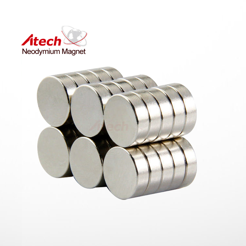 Nickel Coated N42 Neodymium Magnet Disc is made from high performance Neodymium Iron Boron. The NORTH pole is on one circular face and the SOUTH pole is on the opposite face. These Magnets are plated with 3 layers of protective coatings - Nickel + Copper + Nickel (Ni-Cu-Ni). The maximum operating temperature of Nickel Coated N42 Neodymium Magnet Disc is up to 80 degrees C.